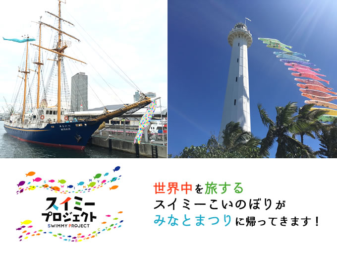 内容:子ども達の夢が描かれたスイミーこいのぼりを帆船のマストで掲揚します。