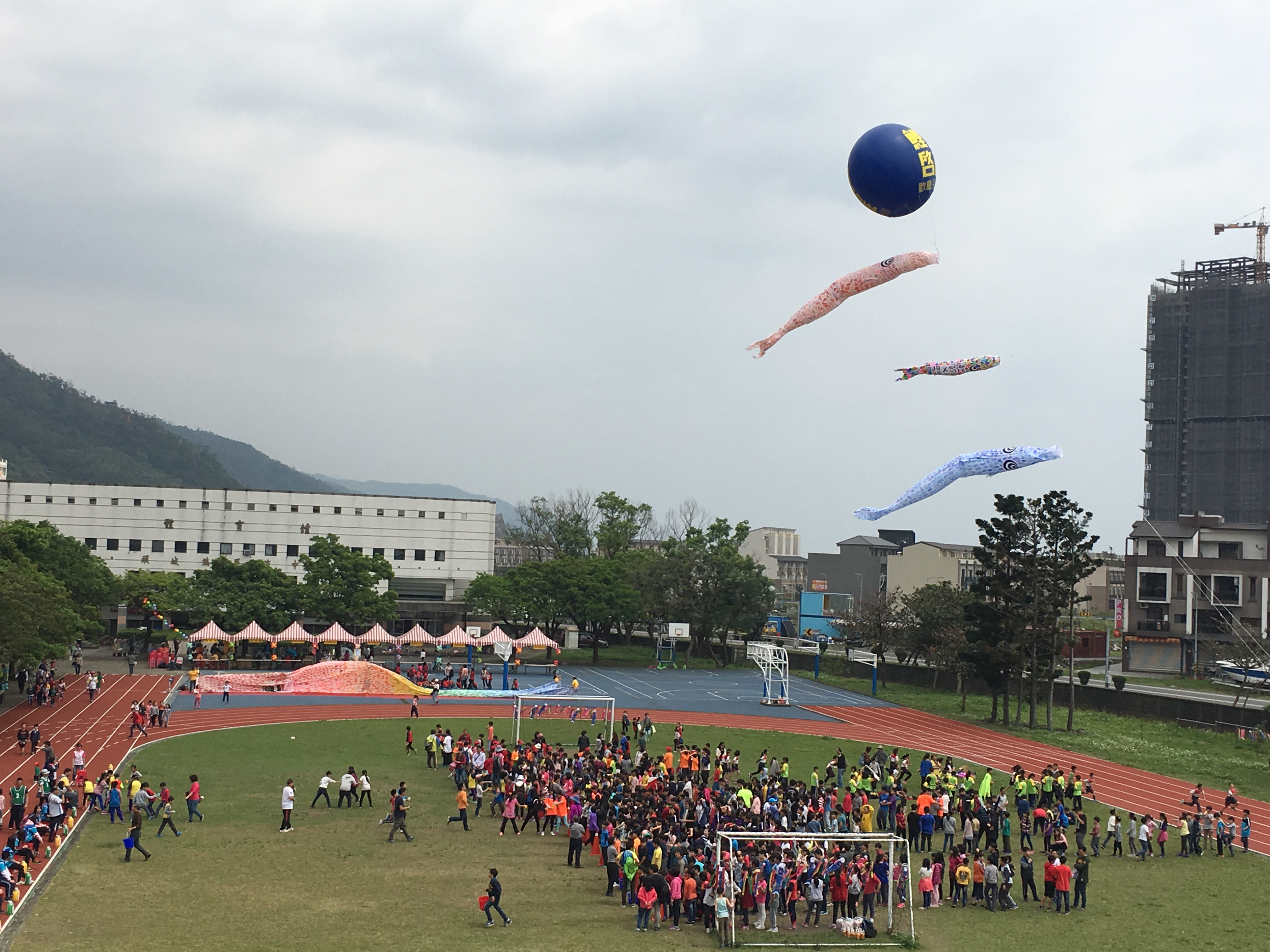 今回、日本から25m巨大スイミーこいのぼりを持参し、台湾の子ども達に通り抜けイベントを開催予定。