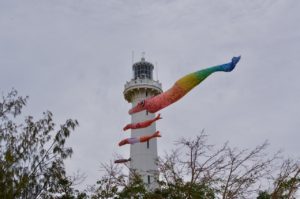 完成したスイミーこいのぼりを含めて、11/3アメデ島・アメデ灯台にて、スイミーこいのぼりの掲揚イベントを行います。