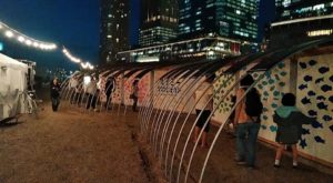 壁のサイズは全長約10mx縦約2m、子ども達が真っ白なキャンバスをカラフルな小さなさかな達と夢で埋め尽くし大きなこいのぼりを完成させます。