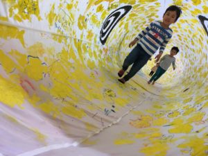 夢いっぱいのスイミーこいのぼりの中をくぐりぬけるイベントです。